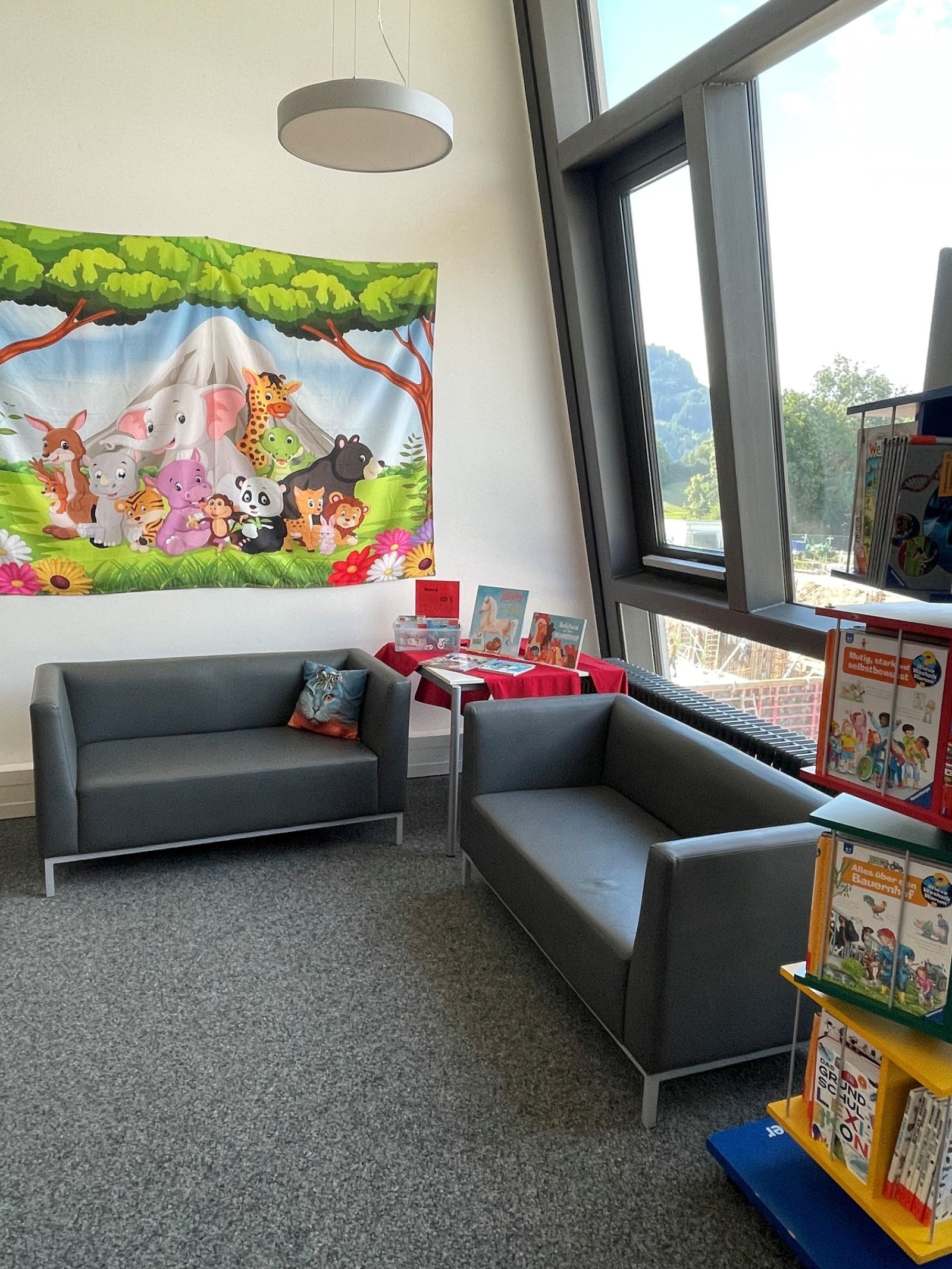 Die Bibliothek ist mit der Ortsbuslinie, Haltestelle Sonthofener Straße/Burgbichl/P1, gut erreichbar.